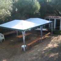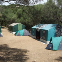 L’association peut mettre à disposition sept grandes tentes marabout de 8 places séparées en deux chambres de quatre places chacune offrant une capacité d’accueil totale de 50 jeunes et leurs encadrants.